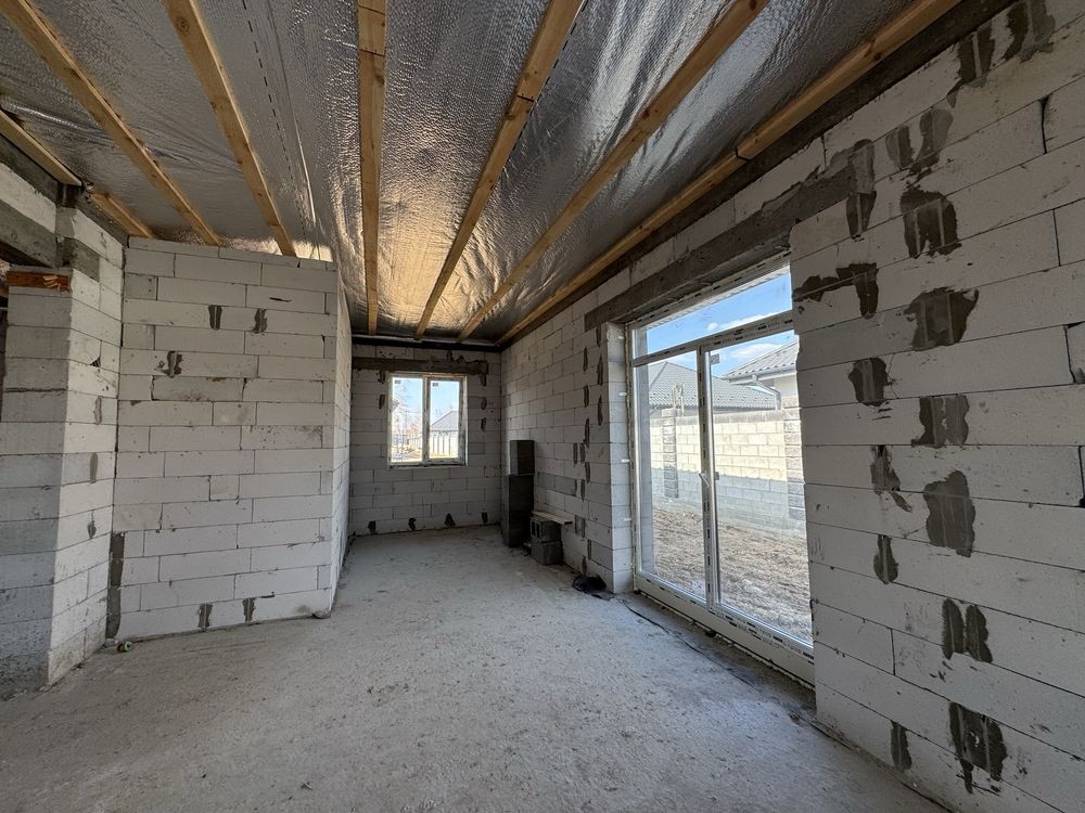 Будинок побудовано з газоблоку 300,утеплений пінопластом 100,фасад-декоративні термопанелі фібробетон -колір під травертин.Вікна якісні-Rehau з солар ефектом.Дах -металочерепиця (Словакія )метал товщиною
