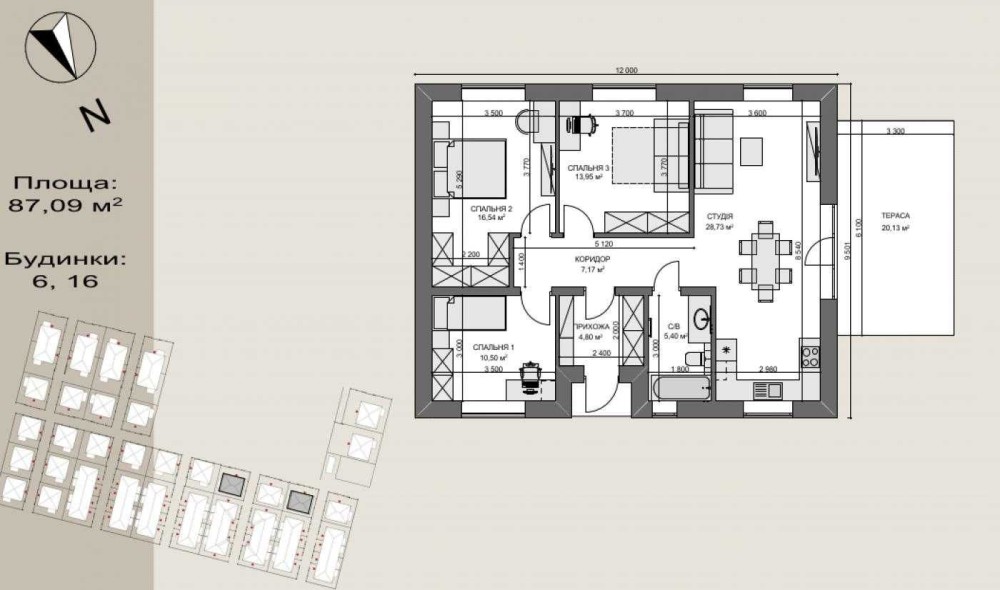 • Кімнат