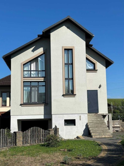 На другому поверсі три спальні і санвузол, в цоколі гараж, котельня (електричний котел та твердопаливний) і господарське приміщення.