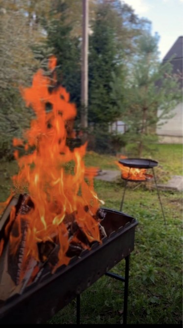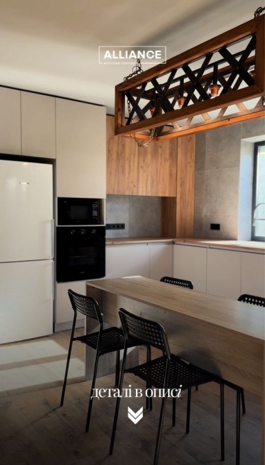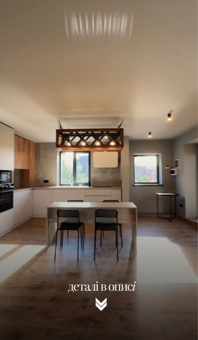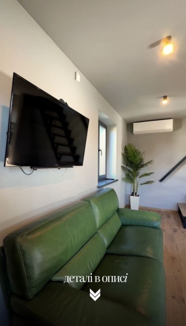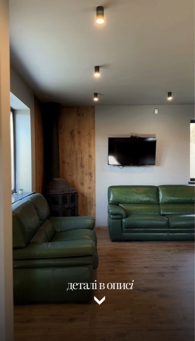 -1 поверх 35м. кухня вітальна, 2 шкіряних дивани (1 розкладний), телевізор 45 дюймів, твердопаливний камін з рукавом на другий поверх, кондиціонер до -20, посудомийна машина, індукційна плита, духова шафа, мікрохвильова піч, витяжка, холодильник, також встановимо нову кухню.