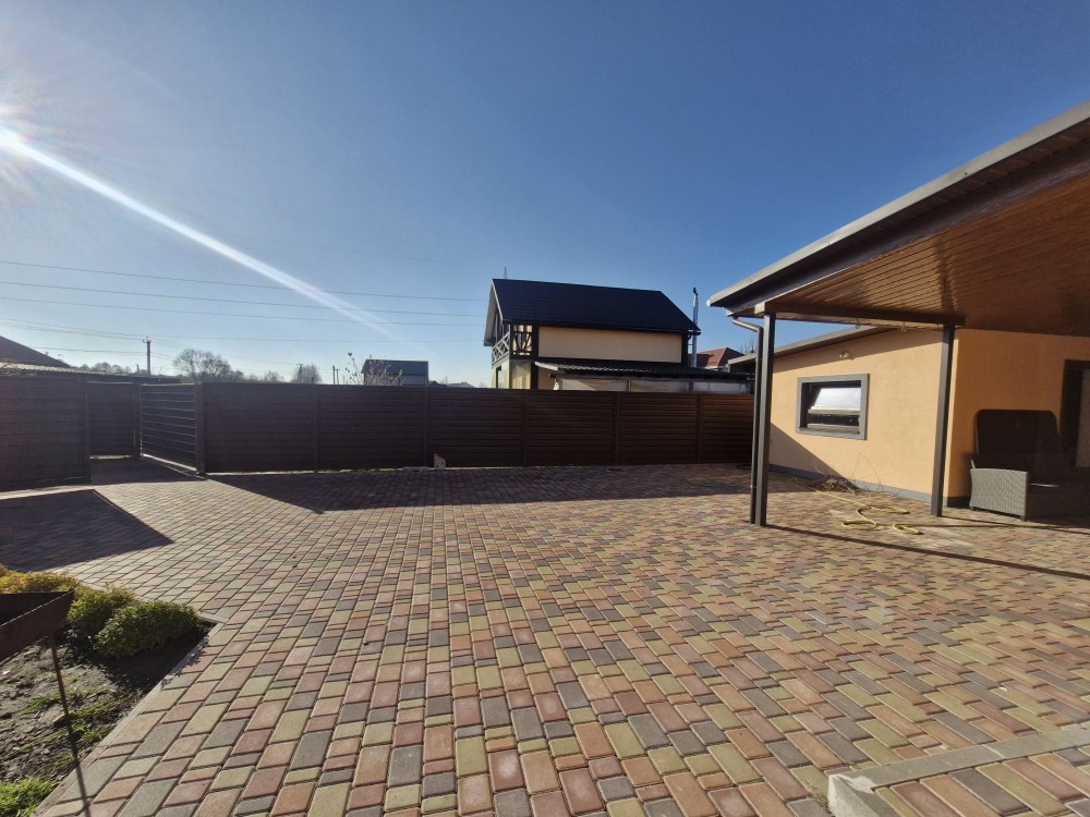 Тут спокійна атмосфера та відчуття приватності — закрита територія лише на чотири будинки, власний заїзд, впорядкована ділянка з новим парканом і бруківкою. Вранці можна вийти на терасу з кавою, подивитись на доглянуті клумби та фруктові дерева, а ввечері припаркувати машину під навісом.