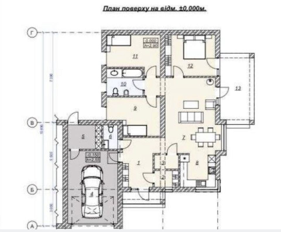 -Гараж: вбудований, з автоматичними воротами та прямим виходом у будинок.