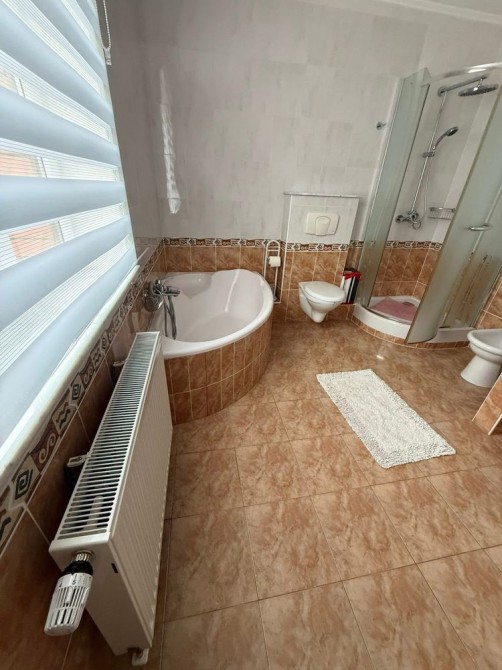 Продається новий індивідуальний житловий будинок котеджного типу загальною площею 131 м.кв. під чистове оздоблення, розташований в селі Крячки Фастівського (колишнього Васильківського) району Київської області на території нового житлового масиву із сучасною котеджною забудовою, що перебуває на відстані 20 км від станції метро «Теремки» міста Києва та за 1,5 км від міста Васильків. Житловий будинок складається з першого та мансардного поверхів. Загальна площа будинку із допоміжними спорудами становить 173,1 м.кв., з яких: а) площа будинку ‒ 131,0 м.кв., у тому числі житлова (основна) ‒ 94,1 м.кв. та допоміжна (підсобна) ‒ 39,6 м.кв.; б) площа тераси – 23,1 м.кв.; в) площа трьох балконів – 13,4 м.кв. (5,8 + 4,9 +2,7 м.кв.); площа ґанку – 5,6 м.кв. Котедж вміщує в собі 5 (п’ять) доволі просторих кімнат, 2 (два) санвузли (на кожному із поверхів), 1 (одне) технічне приміщення (котельня або бойлерна), 2 (два) коридори, 1 (одну) вітальню із виділеною еркером обідньою зоною, що поєднана з кухнею. Із вітальні є окремий вихід на велику терасу, з якої відкривається затишний вигляд на внутрішній двір. Кожна з трьох мансардних кімнат має окремий вихід на балкон. Над усією площею мансардного поверху розташоване містке горищне приміщення. Будинок приєднаний до електропостачання потужністю ‒ 12кВт (3 окремих фази). Має свердловину глибиною 55 метрів із фактичним дебітом (спроможною потужністю) ‒ 2,5 м.куб./год. та каналізацію септик з переливом на 11 м.куб. На усій площі першого (крім житлової кімнати) та у санвузлі мансардного поверхів встановлена система водяної теплої підлоги фірми «Rehau». По котеджу розведені: опалення, водопостачання і каналізація. В будинку передбачена можливість встановлення камінної топки, а також приєднання котеджу до газорозподільної мережі та всесвітньої мережі Інтернет. Індивідуальний житловий будинок розташований на земельній ділянці площею 0,075га з цільовим призначенням – (02.01) для будівництва і обслуговування житлового будинку, господарських будівель і споруд (присадибна ділянка). Під житловою забудовою перебуває 0,0115га земельної ділянки, решта 0,0635га займає просторий двір. Кадастровий номер земельної ділянки: 3221487004:03:006:0328. Земельна ділянка огороджена парканом із монолітного фундаменту, що опорядковане металевим штахетом із обох боків та металевим профілем з тильної та фасадної сторін. Заїзд у двір має відкатні ворота. На території двору (перед будинком) облаштоване загальне паркомісце на 2 (два) автомобіля, решта двору засіяне газонною травою. Котедж побудований з якісних матеріалів за проектом європейського архітектурного бюро. Так, фундамент, перекриття та міжповерхові сходи ‒ монолітні. Стіни будинку збудовані з газоблоку AEROC D500 (товщиною 300мм), що утеплений пінопластом 100мм. Внутрішні міжкімнатні перегородки виконані із цегли. Дах ‒ металочерепиця фірми «Ruukki», що утеплений мінераловатними плитами загальною товщиною 200мм. Вікна вироблені з профілю фірми «Rehau» серії EVRO 70. Фасад котеджу покритий акриловою штукатуркою. Будинок за усім периметром має вимощення шириною 0,9 метри, що облаштоване фігурними елементами мощення (ФЕМ). Зручне ергономічне планування будинку, а також наявність високих стель обох поверхів дає можливість відчувати себе вільно і затишно. Завдяки правильному утепленню зовнішніх стін будинку, у ньому прохолодно влітку та тепло вз