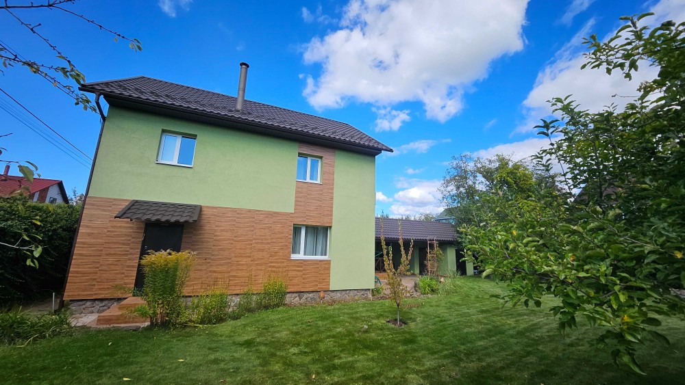 Продається капітальний житловий будинок в охайному, доглянутому стані: заходь - живи. Рік побудови - 2014. Розташування: Київська область, Бориспільський район, село Дударків (район зрубів). Відстань від воріт до ст. метро "Бориспільська" - 22 км, до ст. метро "Лісова" - 26 км. Під'їзд асфальтований. Загальна площа 216,8 кв.м., житлова - 111,6 кв.м., кухня - 12,4 кв.м., відкрита тераса 22 кв.м. В будинку чотири житлові кімнати (спальні), вітальня, два с/вузли з душовими кабінами, котельна, пральна, підвал, гараж на два авто (автоматичні ворота), погріб. Трифазне електропостачання з окремими стабілізаторами (на кожну фазу). Встановлено бензиновий генератор потужністю 6,5 кВт з автоматичним вмиканням у разі зникнення напруги в мережі. Газовий (з джерелом безперебійного живлення) та електричний опалювальні котли, бойлер для підігріву води. Водопостачання - особиста свердловина глибиною 60 метрів з фільтраційною системою очищення води. Чотири накопичувальні ємності (септики): для фекальної води (з вентиляцією) та відведення дощової (талої) води. Відеонагляд, домофон, сигналізація, провідний Інтернет. Площа земельної ділянки 22 сотки. Цільове призначення: будівництво та обслуговування житлового будинку. На території: літня кухня з барбекю, господарче приміщення, погріб, теплиця з полікарбонату, літній душ з вбиральнею, вольєр площею 13 кв.м., садок, газон з автоматичним поливом, город площею 7 соток. У садку: яблуні літніх та осінніх сортів, сливи, персики, вишні, черешня, айва, груша, смородина, виноград. По периметру ділянки паркан з профільного листа (фасадна частина на фундаменті з каменю). Автоматичні розсувні ворота. Будинок не перепродавався. Первісний документ - Свідоцтво про право власності. Поштова адреса, реєстрація місця проживання. Продаж за ціною власника, без комісійних посереднику.