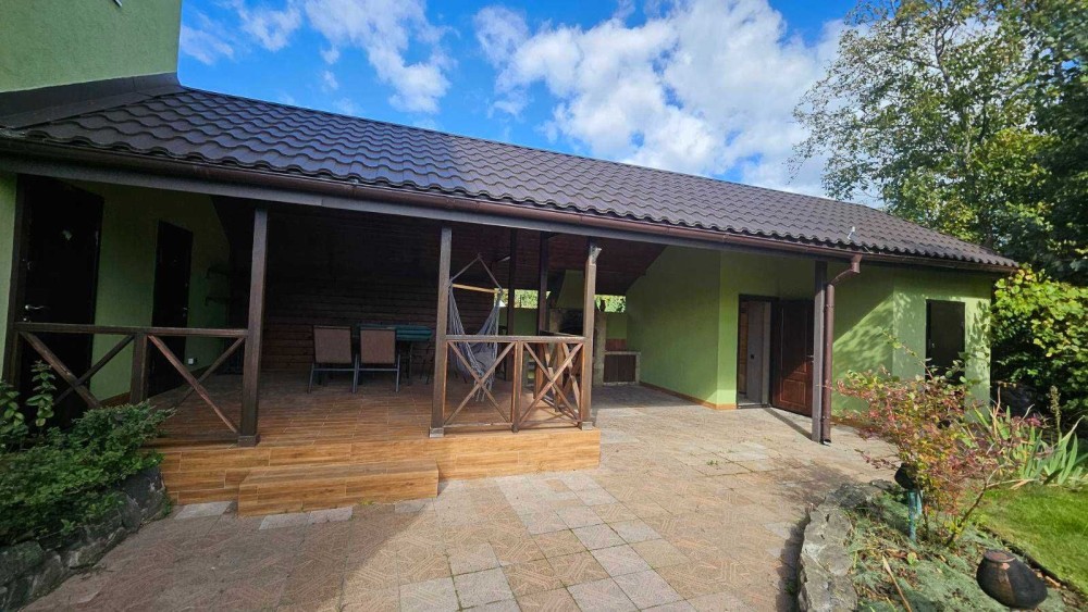 • велика відкрита літня тераса з мангалом, зручний вихід з будинку на терасу;