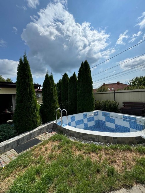 На території зроблений ландшафтний дизайн, є відкритий басейн і три мангальні зони. Земельна ділянка має площу 0,36 га, з яких зайнято тільки 26 сотих, а 10 сотих під перспективу забудови. Від центральної дороги до готелю всього 600 метрів, з яких 100 метрів - приватний доїзд, площа якого складає 3 сотих.