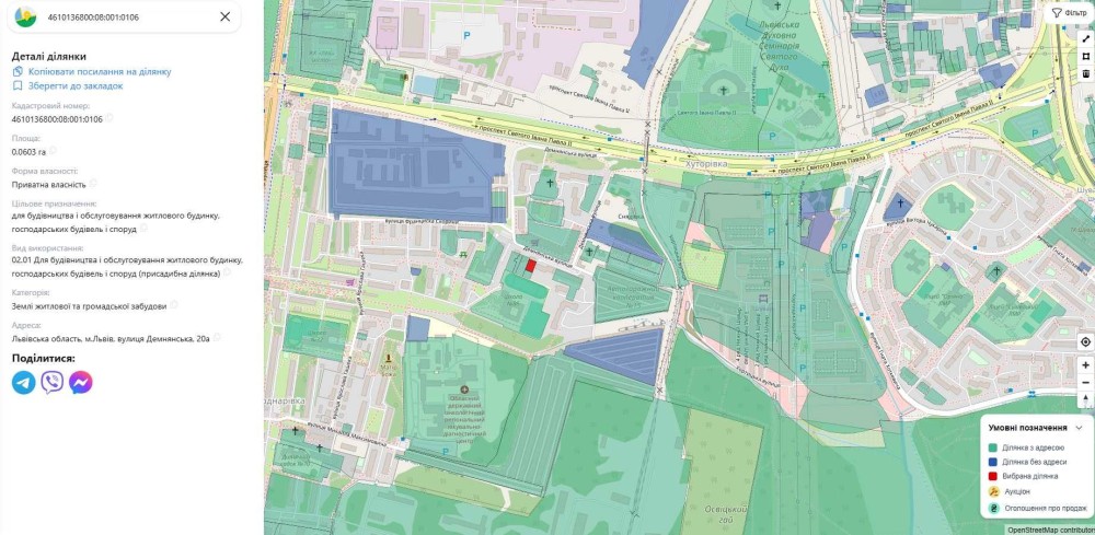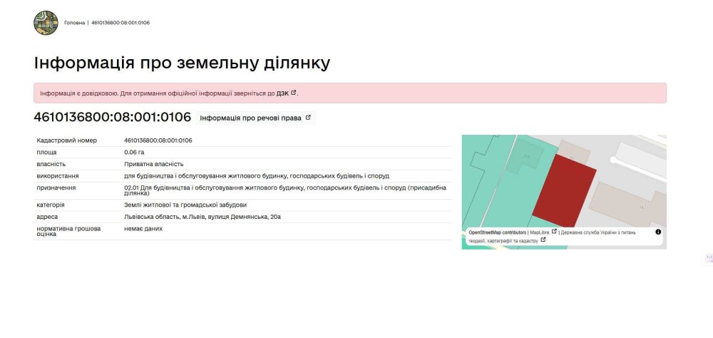 Кадастровий номер: 4610136800:08:001:0106.