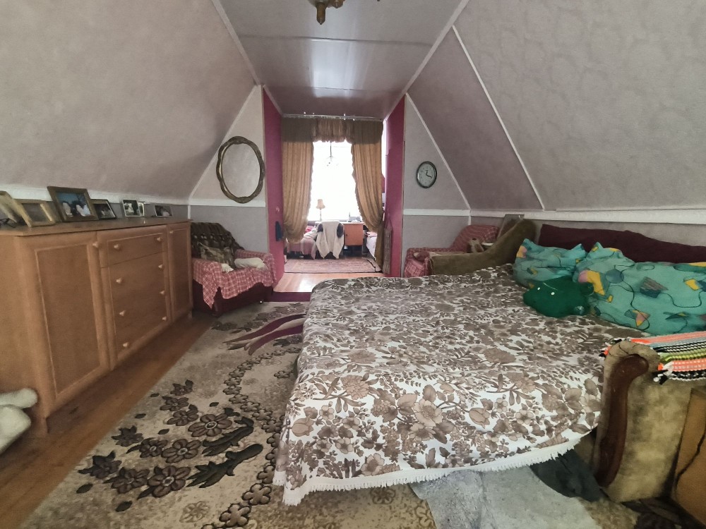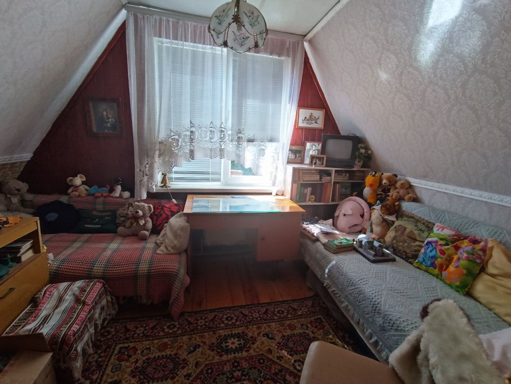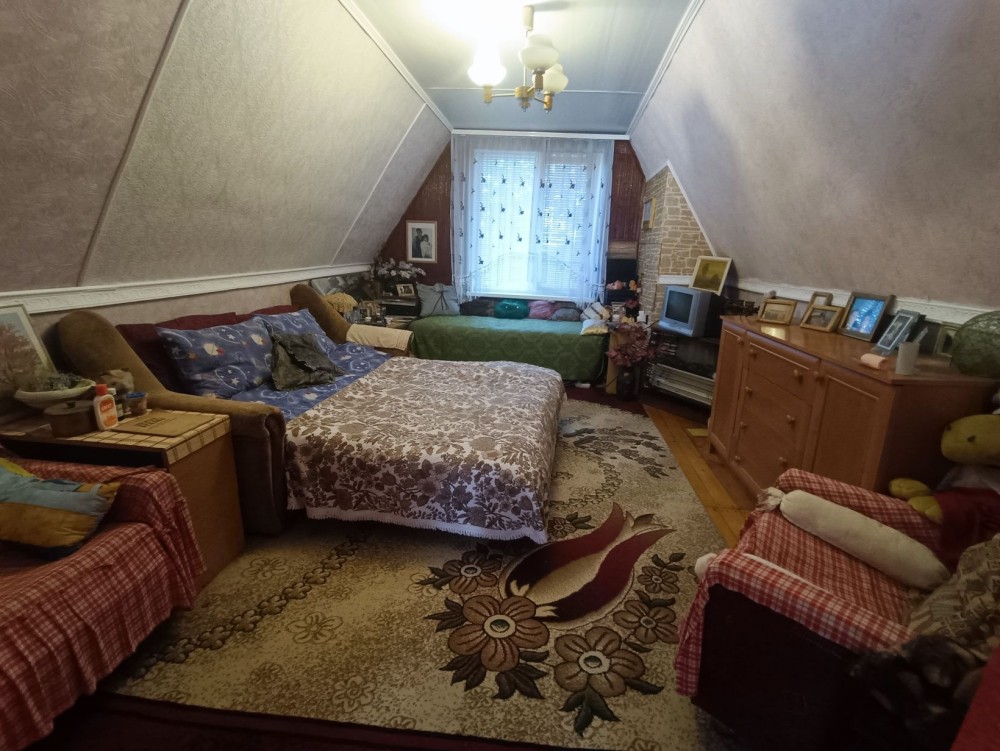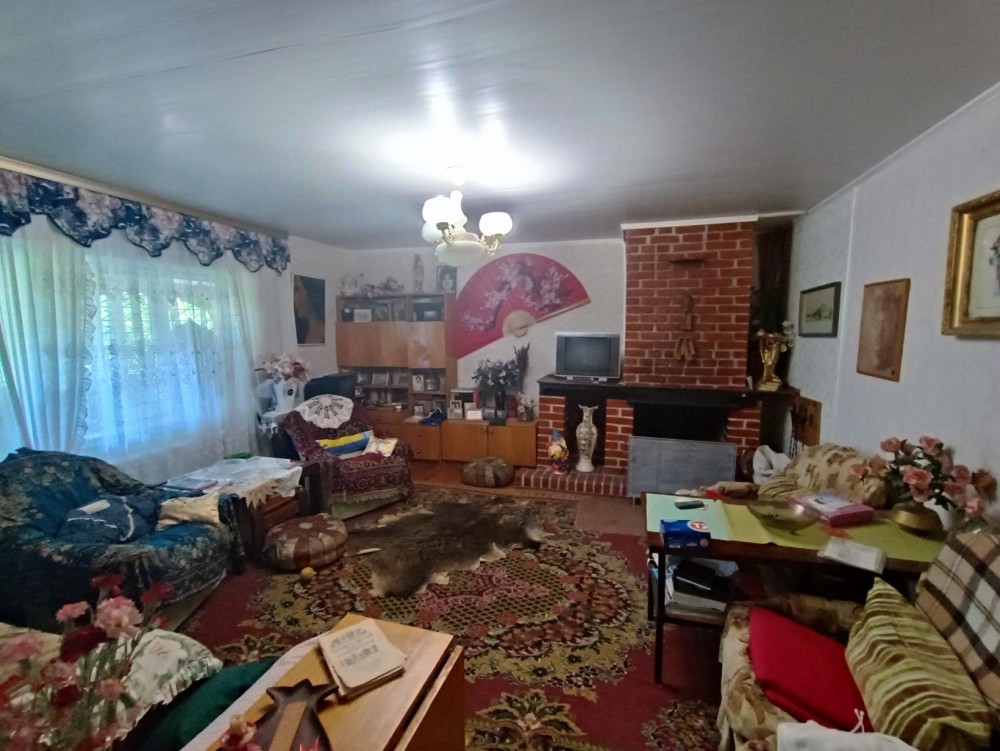 Продається будинок 86 м.кв., в с. Крехаів, вул. Деснянська (Гагаріна) 33, Остерська громада, Чернігівська обл.. Будівля складається з одноповерхової утепленоі дерв’яноі хати та двоповерхової цегляної ,між якими є суміжні двері. Має один суцільний дах з метало черепиці. Стара хата площею 42,8 кв.м. має дві кімнати, «сінці» (комора), веранда, також є дров’яне опалення – груба. Більш нова, цегляна хата, площею 42,9 кв.м., має два поверхи: три кімнати, сходи та тераса , є електроопалення на першому поверсі. Горище також можна перепланувати під ще одну кімнату. Загальна площа будинку 85,7 кв.м., земельна ділянка 0,3 га (з яких 0,25га земля загального користування). На територіІ розташовані сарай, погреб, санвузол (туалет) та велика літня альтанка. Будинок розташований в мальовничому місці – до річки 100м. Має газопостачання, електропостачання (двохзонний лічильник), скважина на воду 7м. Дальність від Києва – 45км.