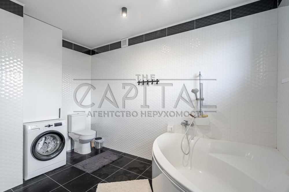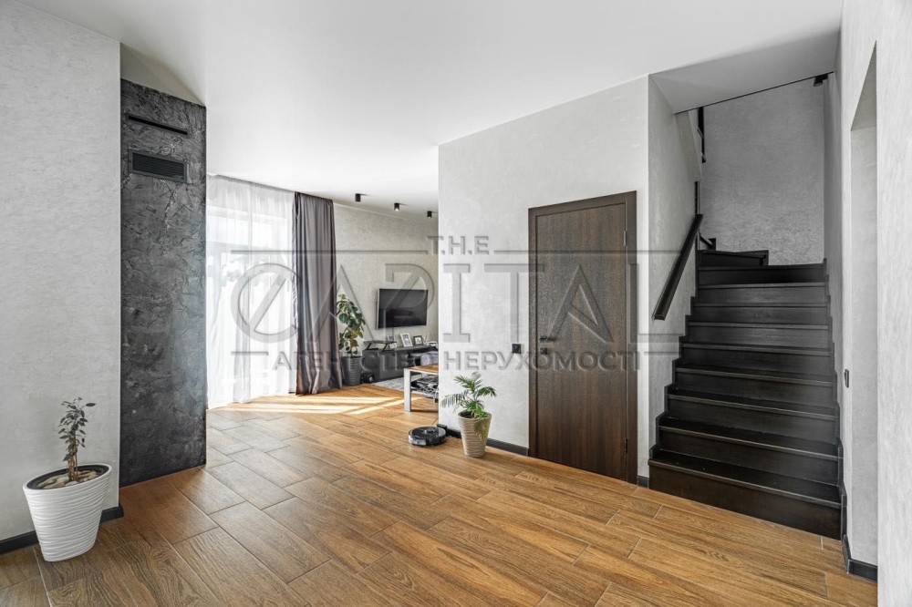 Продається сучасний двоповерховий будинок 152 кв м з ремонтом, облаштований необхідними меблями та технікою, в 13 км від Києва, Старі Петрівці Вишгродського району по вулиці Межигірській.