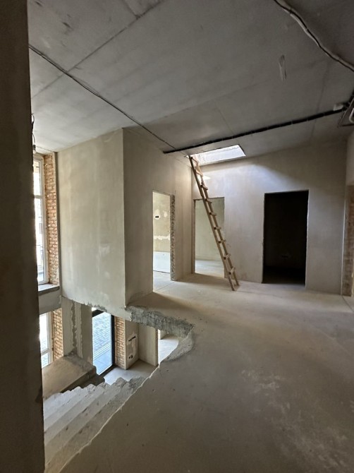 Всередині зроблені всі чорнові роботи: розведена тепла підлога, електрика, сантехніка, кондиціонування, виконана стяжка та штукатурка.