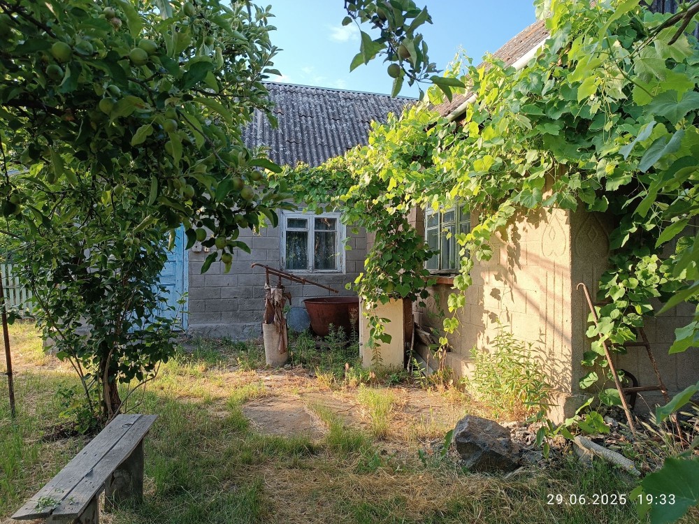 Продається будинок 86 м.кв., в с. Крехаів, вул. Деснянська (Гагаріна) 33, Остерська громада, Чернігівська обл.. Будівля складається з одноповерхової утепленоі дерв’яноі хати та двоповерхової цегляної ,між якими є суміжні двері. Має один суцільний дах з метало черепиці. Стара хата площею 42,8 кв.м. має дві кімнати, «сінці» (комора), веранда, також є дров’яне опалення – груба. Більш нова, цегляна хата, площею 42,9 кв.м., має два поверхи: три кімнати, сходи та тераса , є електроопалення на першому поверсі. Горище також можна перепланувати під ще одну кімнату. Загальна площа будинку 85,7 кв.м., земельна ділянка 0,3 га (з яких 0,25га земля загального користування). На територіІ розташовані сарай, погреб, санвузол (туалет) та велика літня альтанка. Будинок розташований в мальовничому місці – до річки 100м. Має газопостачання, електропостачання (двохзонний лічильник), скважина на воду 7м. Дальність від Києва – 45км.