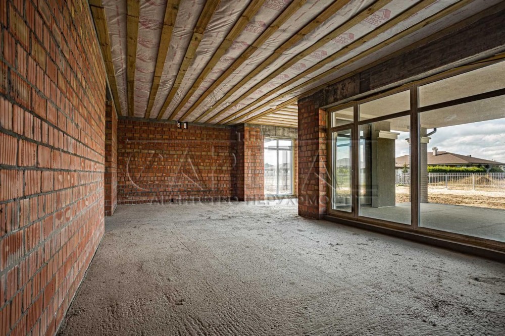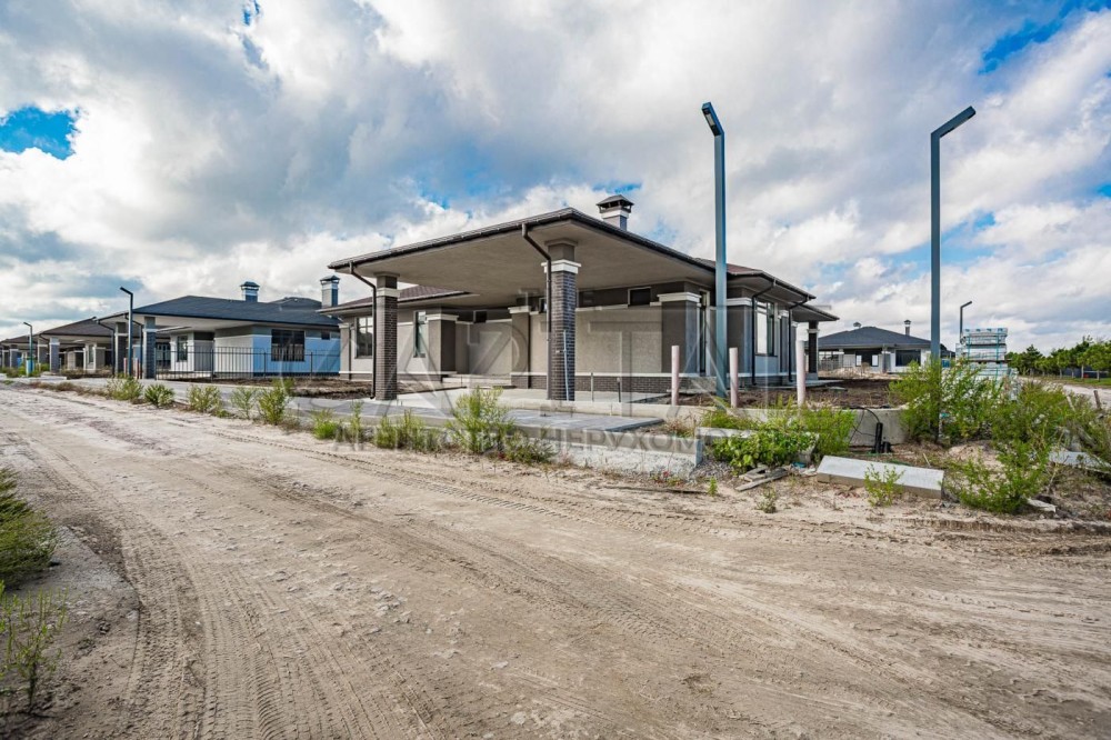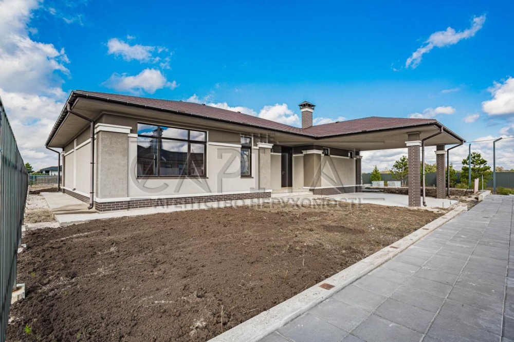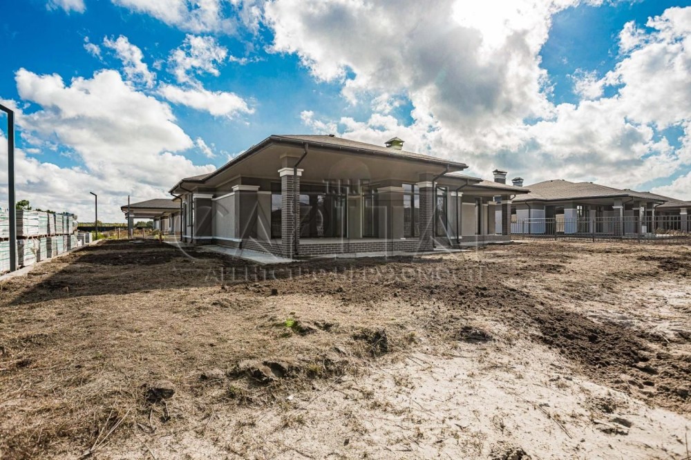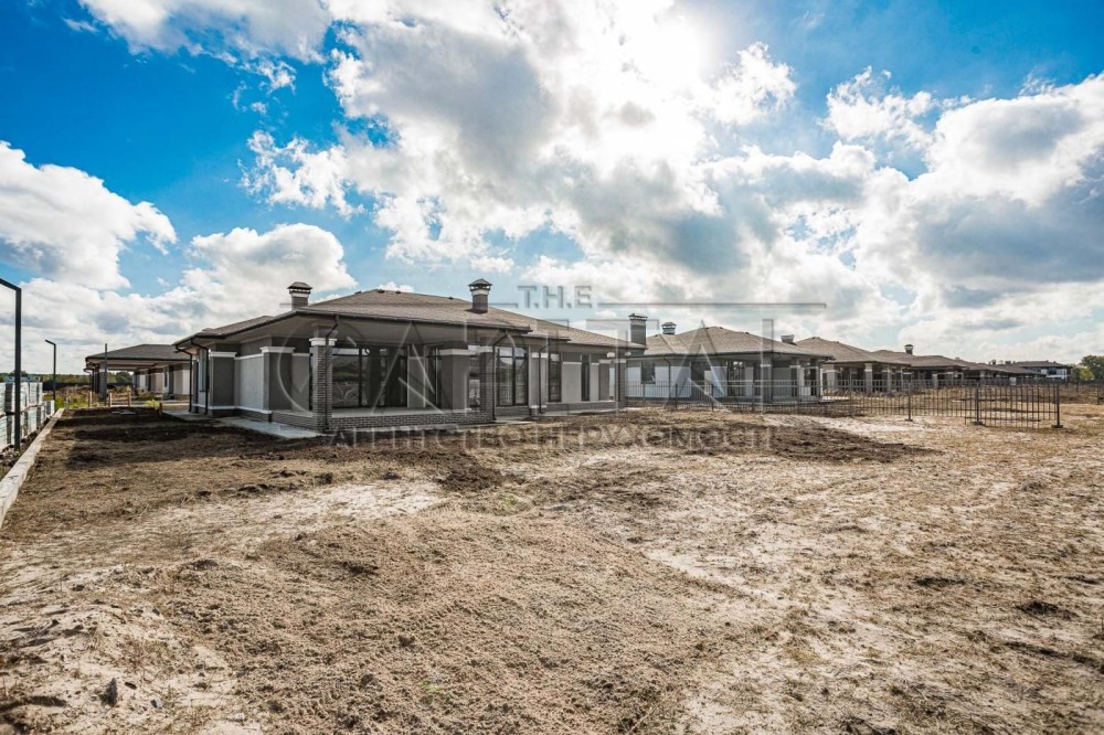 Продаж будинку з газом, Вишеньки, Бориспільський р-нПродажа дома с газом, Вишенки, Бориспольский р-нСучасний котедж з оригінальним плануванням та чудовим ім'ям ТайсонПобудований з червоної керамічної цегли та утеплений зовні мінеральною ватою.Просторий одноповерховий будинок з трьома спальнями, дві з яких обладнані власним санвузлом і вбиральнею. Біля третьої спальні розташований гостьовий санвузол.Велика кухня, обідня зона і затишна вітальня з виходом на криту терасу.Так само є кілька госп. приміщень і навіс для двох автомобілів.Будинок продається з обробкою фасаду в сучасному стилі, відмосткою навколо будинку, забором, воротами.До будинку підведені комунікації (електрика, газ, вода).Будинок (2021):1. Фундамент - монолітна суцільна плита, по периметру утеплений фундамент на глибину промерзання 1.2 м.2. Стіни - керамічний блок 2 НС, товщина стін зовнішніх 380мм, внутрішні несучі 250мм, перегородки 120мм.3. Фасад - утеплений 100 мм мінеральна вата, щільність 135 кг/м3.4. Оздоблення фасаду - силіконово-мінеральна штукатурка, фарбування - силіконова фарба. Цоколь та колони оздоблені керамічною плиткою (кабанчик).5. Дах - бітумна черепиця, утеплення даху по перекриттю (по площині стелі) - 200 мм вата 35 щільності.6. Вікна Rehau євро 70 із зовнішньою ламінацією.7. На ділянці автономний септик з дренажний полем, вода централізована, електрика заведена.8. На території встановлені центральні генератори, для автономного живлення.#A9239