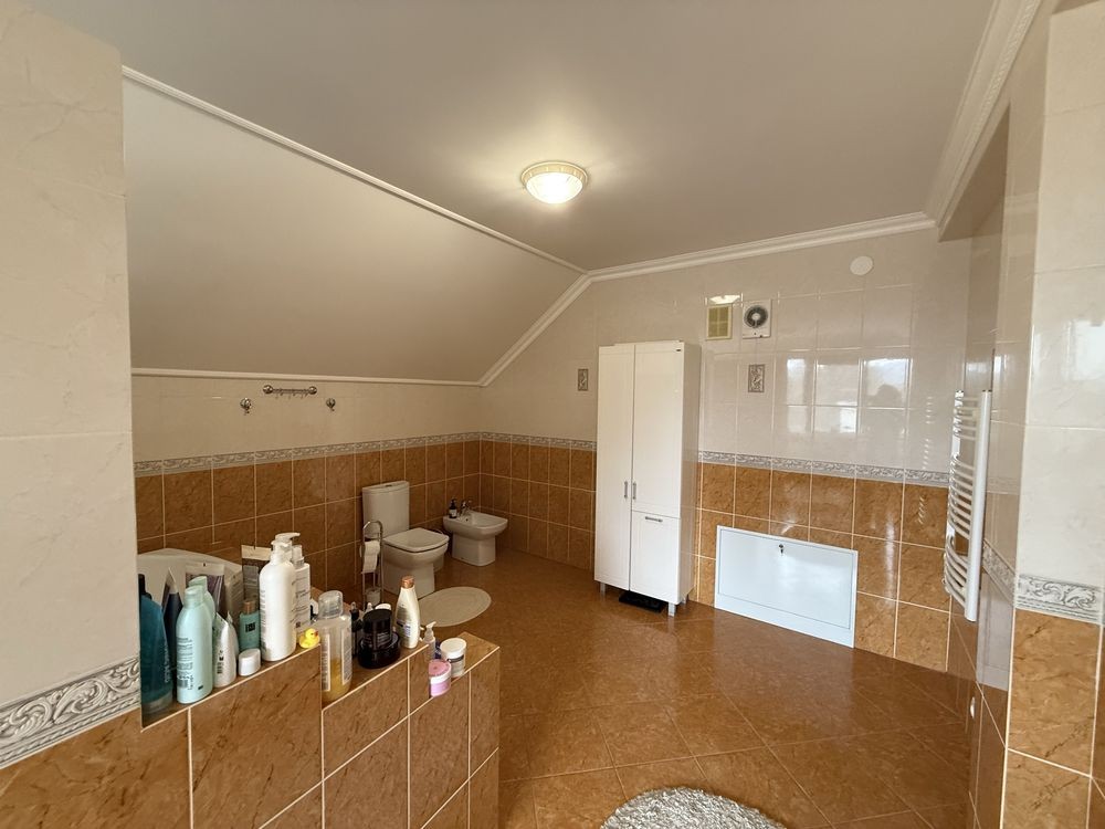 Терміновий продаж 2-о поверхового просторого і якісно-збудованого за індивідуальним архітектурним проектом, будинку площею 176 м² в с. Пухівка в Броварському р-ні. Будинок розташований в престижному закритому товаристві з охороною. Будинок побудований з червоної цегли, утеплений мінеральною ватою ватой ROCKWOLL 80 мм, фасад з цегли Фагот, кровля - фінська бітумна черепиця "katepal", двокамерні вікна "Века" з автоматичними захисними ролетами кольору золотий дуб, декоративна штукатурка, іспанская плитка, дуб паркет-дошка, імпортна сантехніка. Ділянка розміром 14 соток має правильну прямокутну форму, за проектом розміщено індивідуальний житловий 2-о поверховий будинок та гараж на 2 авто (53м2). Планування будинку забезпечує комфортне проживання великої родини. Планування: 5 спален, кухня, вітальня, 2 с/в. Якісний ремонт, дерев'яні меблі, кухонний гарнітур з натурального дубу. Під’їзд до будинка асфальтованою освітленою дорогою, глухий кут вулиці з виходом на піщаний пляж р. Десна, поруч ліс, озера, ресторан, магазин, зупинка громадського транспорту та бази відпочинку. Живописне, красиве місце, чисте повітря, для постійного проживання, все навколо забудовано. Інженерія та комунікації: Електрика — Виділена лінія електроенергії на 20кВт. • Газовый двоконтурний котел • Електрокотел • Діючий камін • Бойлер • Система очищення води • Кондиціонери • Підключено інтернет • Автоматичні ролети на вікнах. • Скважина • Каналізація — два переливні дренажні септики • Автополив • Сигналізація та відеоспостереження • Автоматичні ворота. Будинок продається з меблями та технікою. 218000 у. о. Можливий торг!