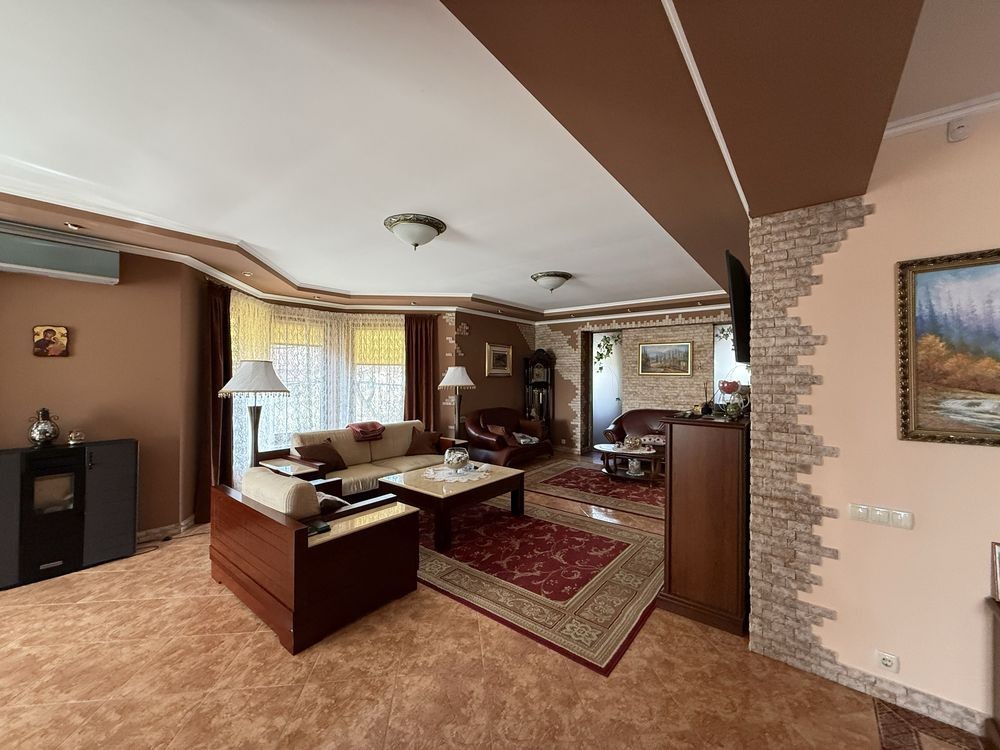 Одесса Фонтанка Продам 4х комн ДОМ 410 м²/ 10 соток 2х - этажный, +мансарда, гараж, +подвал 499000$ 0500702081 Первый этаж: Просторная и светлая кухня студия, гостиная с камином, санузел с высококачественной сантехникой. Просторный гараж для вашего автомобиля. Второй этаж: Три спальни, Уютный кабинет для работы или отдыха. Просторная гардеробная. 3й мансарда свободной планировки. Двор зона для барбекю, Крытое место для парковки автомобиля ночное освещение по периметру участка, Ухоженная территория с ландшафтным дизайном.