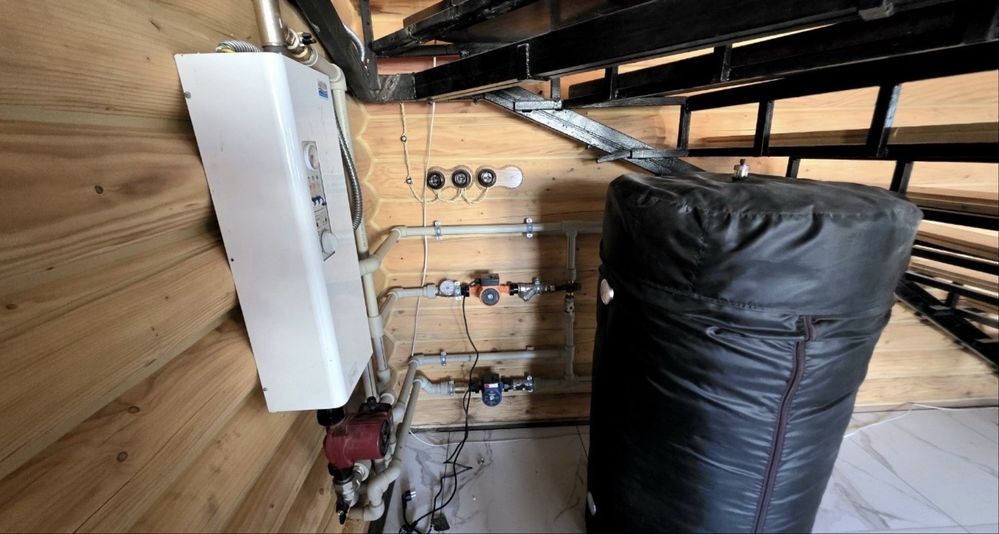 Комбіноване опалення:камін на 1-поверсі,тепла підлога (водяний контур+електроопалення).