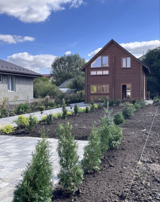 Продаж Нового Еко-Будинка збудованого з смереки загальною площею 93 кв.м. на 5 сотках землі в місті Бориспіль кінець вулиці Франка.