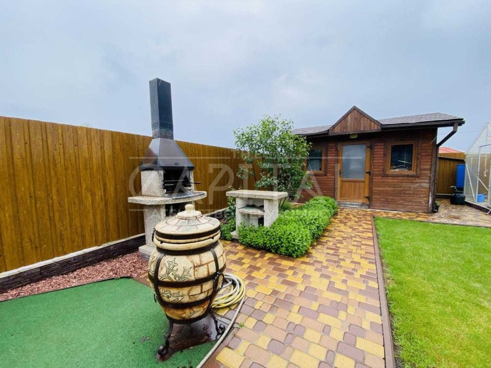 Продаж БЕЗ комісії. Сучасний будинок з новим ремонтом в мальовничому місці, поряд із чудовим озером. Розташований біля с.Мощун у закритому містечку "Джерело". Хвойний ліс, велике озеро, охорона 24/7, гарні сусіди - ідеальні умови для спокійного життя. На іншому березі озера - комплекс відпочинку Пуща Лісова. До Києва 20 хвилин: по варшавці через Горенку або через Пущу-Водицю (12 км від КП Пуща-Водиця). Ціна 270000 дол. Загальна 250 кв.м.+ Тераса 20 м. На 1 поверсі: передпокій, санвузол, гостьова спальня або кабінет , кухня - вітальня з чудовою фінською піччю - каміном та виходом на терасу. На 2 поверсі: 3 спальних кімнати (одна - з власною ванною та гардеробом), санвузол. Цокольний: зона відпочинку, великий хамам, санвузол, технічні приміщення з окремим виходом. Будинок дуже комфортний і головне - ще ніхто не жив! Стіни - керамоблок / клінкерна цегла, утепленний мінватою 100 мм. Дах - бітумна черепиця ONDULINE, утеплення 300 мм. Вікна REHAU (3-камерні). Новий стильний ремонт - якісні та довговічні матеріали. Підлога - плитка Італія, парккет Норвегія. Стіни та стеля - фінська фарба, пробка Португалія, шпалери (Ламборгіні, Трусарді) Італія. Світло - люстри Італія. Меблі - дуб і груша. Сантехніка - Італія. Опалення - сучасний тепловий насос, збереже ваші гроші та екологію навкруги! Тепла підлога скрізь, в спальнях радіатори. Гаряча вода - тепловий насос/бойлери. Електрики 32 кВт. Зроблено виведення кабелів у двір для генератора та зарядки електроавтомобіля, а також на даху - для сонячних панелей. Власний септик (2 х 3 м3), центральне водопостачання + 2 власні свердловини з фільтрами (130 м, Сеноманського водоносний горизонт). Ділянка рівна, є зона барбекю, є власний льох(погреб). Сховище для палива. Автоматичні ворота. Крита парковка на 2 авто, є місце для авто гостей. будинок, стіни: керамічна цегла; житлових повірхів: 2; ділянка: 7 сот.