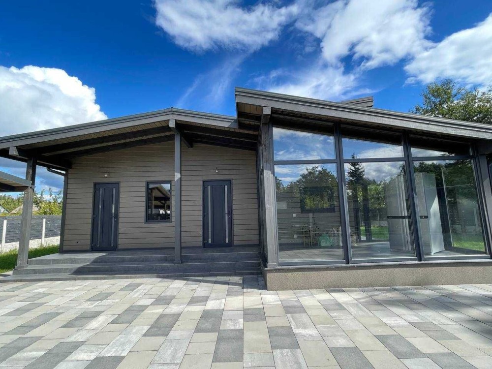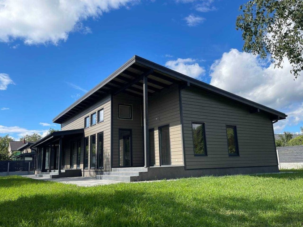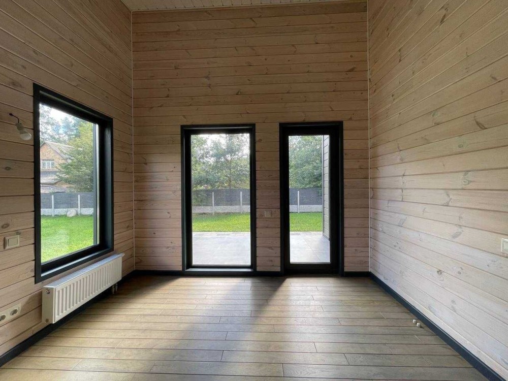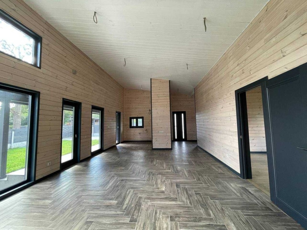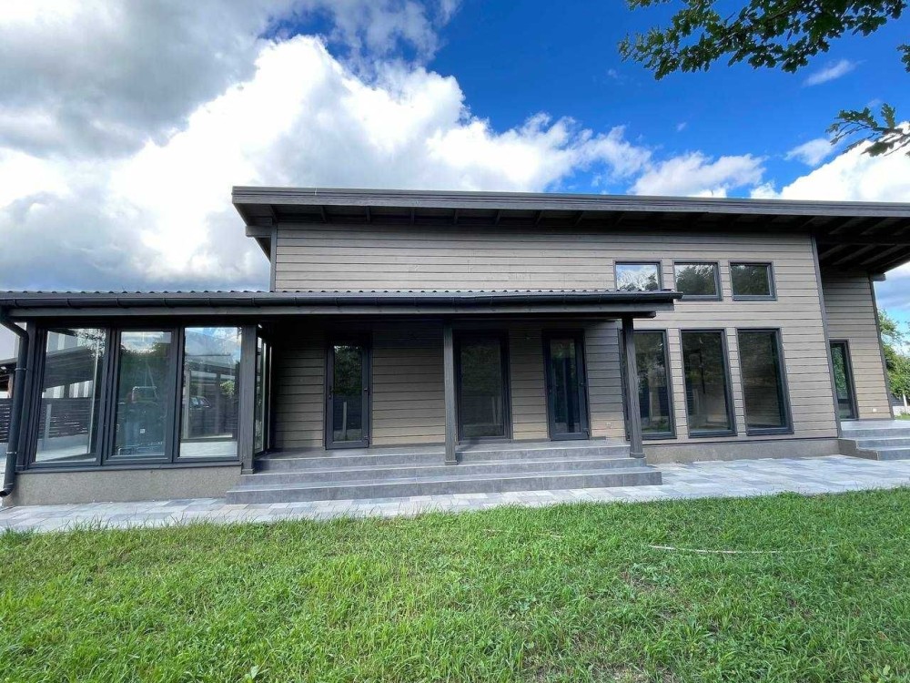 Пропонується до продажу одноповерховий деревяний будинок площею 126 м², збудований за індивідуальним авторським проєктом у скандинавському стилі.