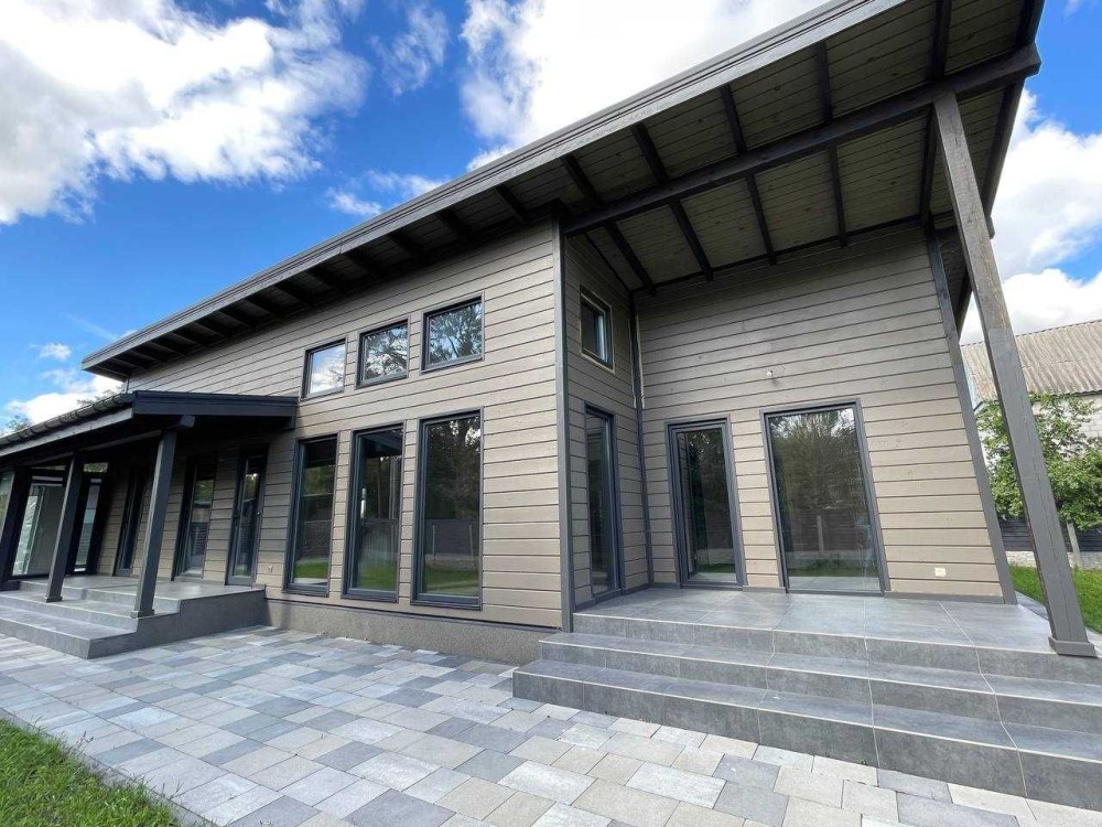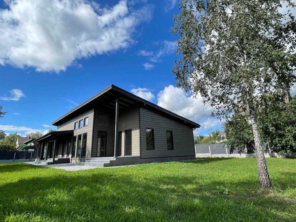 Сучасний екологічний будинок у Ворзелі серед соснового лісу.