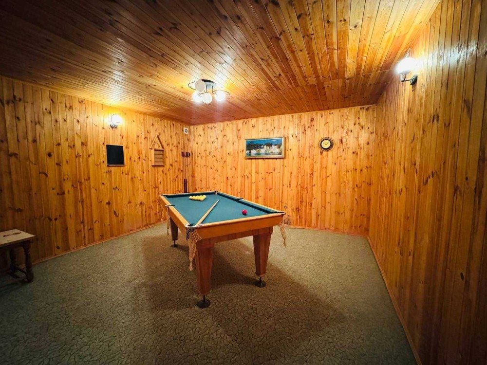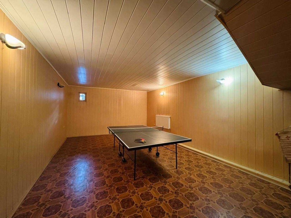 Також є цокольний поверх на якому є кімната з більярдом, окремо кімната з настільним тенісом та окрема кімната для зберігання.
