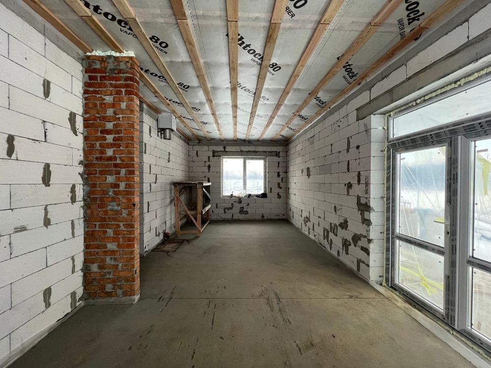 Пропонується енергоефективний будинок площею 115 м², на 8 сотках землі. Будинок має 3 кімнати, 2 санвузли, технічну кімнату, гардероб, кухню-вітальню, терасу, закладну під камін та газ. Використовуються матеріали: газоблок, цегла, мінвата, пінопласт, металочерепиця. Оснащений електрикою, септиком, скважиною. Прибудинкова територія: бруківка, паркан, газон. Під чистовий ремонт. Навколо школа, садок, транспорт, ліс.