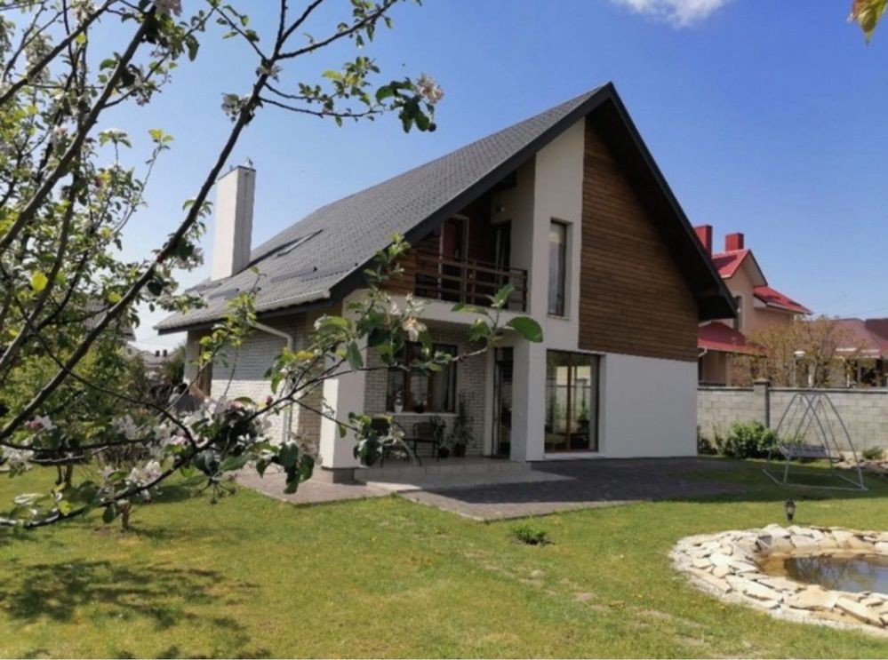 Терміновий продаж 2-о поверхового просторого і якісно-збудованого за індивідуальним архітектурним проектом, будинку площею 176 м² в с. Пухівка в Броварському р-ні. Будинок розташований в престижному закритому товаристві з охороною. Будинок побудований з червоної цегли, утеплений мінеральною ватою ватой ROCKWOLL 80 мм, фасад з цегли Фагот, кровля - фінська бітумна черепиця "katepal", двокамерні вікна "Века" з автоматичними захисними ролетами кольору золотий дуб, декоративна штукатурка, іспанская плитка, дуб паркет-дошка, імпортна сантехніка. Ділянка розміром 14 соток має правильну прямокутну форму, за проектом розміщено індивідуальний житловий 2-о поверховий будинок та гараж на 2 авто (53м2). Планування будинку забезпечує комфортне проживання великої родини. Планування: 5 спален, кухня, вітальня, 2 с/в. Якісний ремонт, дерев'яні меблі, кухонний гарнітур з натурального дубу. Під’їзд до будинка асфальтованою освітленою дорогою, глухий кут вулиці з виходом на піщаний пляж р. Десна, поруч ліс, озера, ресторан, магазин, зупинка громадського транспорту та бази відпочинку. Живописне, красиве місце, чисте повітря, для постійного проживання, все навколо забудовано. Інженерія та комунікації: Електрика — Виділена лінія електроенергії на 20кВт. • Газовый двоконтурний котел • Електрокотел • Діючий камін • Бойлер • Система очищення води • Кондиціонери • Підключено інтернет • Автоматичні ролети на вікнах. • Скважина • Каналізація — два переливні дренажні септики • Автополив • Сигналізація та відеоспостереження • Автоматичні ворота. Будинок продається з меблями та технікою. 218000 у. о. Можливий торг!