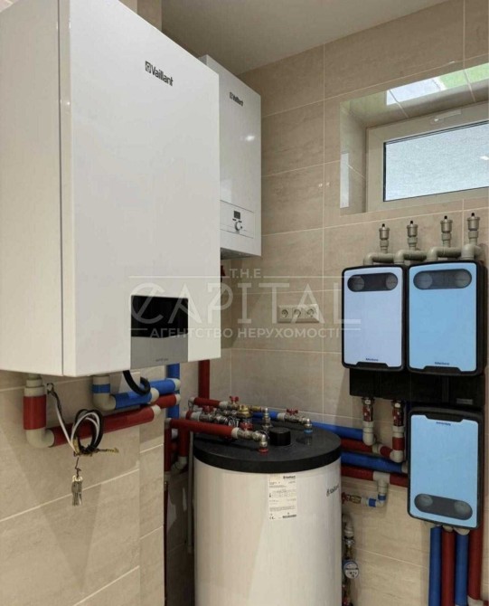 водопостачання від артезіанської свердловини, централізоване резервне електропостачання від ДГ, газовий котел, електричний котел, електроенергія 18кВт, електрофурнітура Legrand,