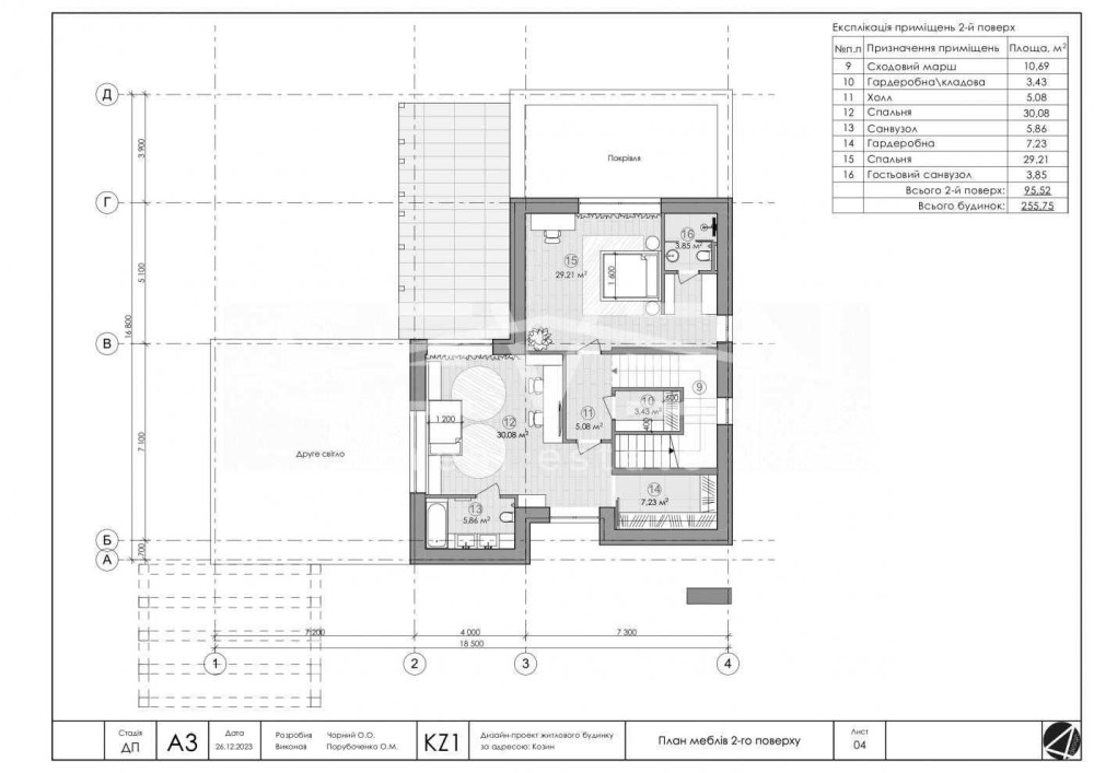 2 поверх: 2 майстер-спальні з санвузлами та гардеробами