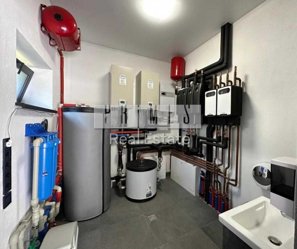 Важливо відзначити, що всі інженерні системи підключені до теплового насосу та працюють з дистаційним керуванням. Також у котельні встановлено систему сольового очищення води. Електричне опалення забезпечене за допомогою електрокотлів та насоса, які вже встановлені.