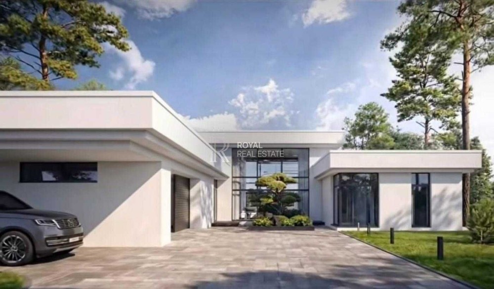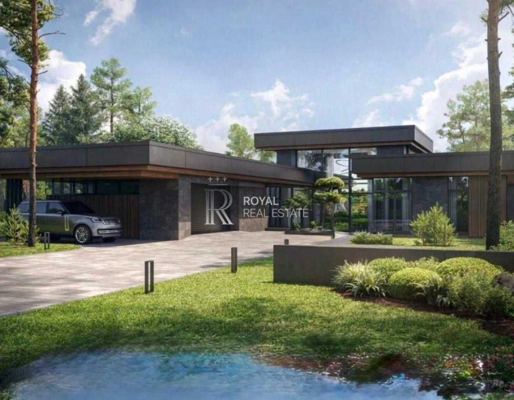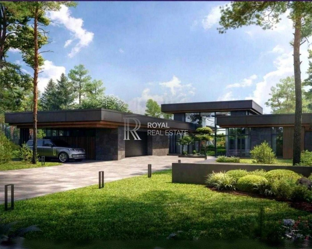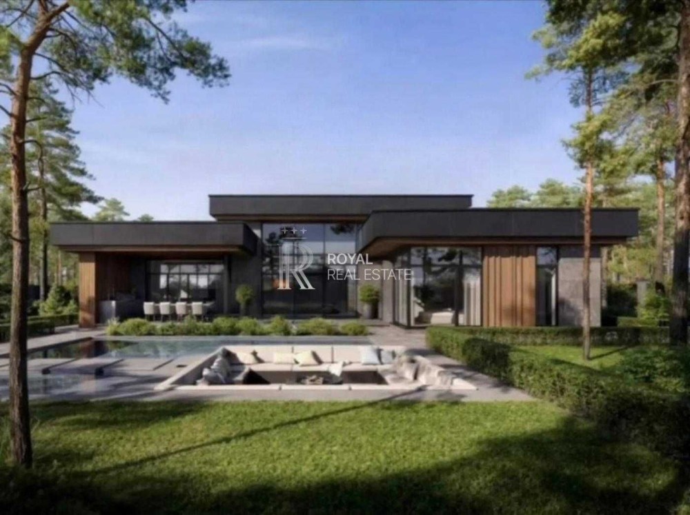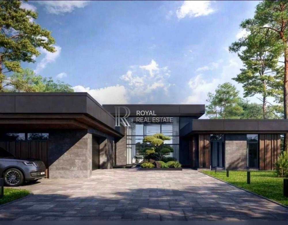 Сучасний одноповерховий будинок у стилі хай-тек на великій ділянці 15 соток у престижному котеджному містечку «Хутір Ясний». Поєднання природи, простору та близькості до столиці — близько 15 хвилин до Печерська.