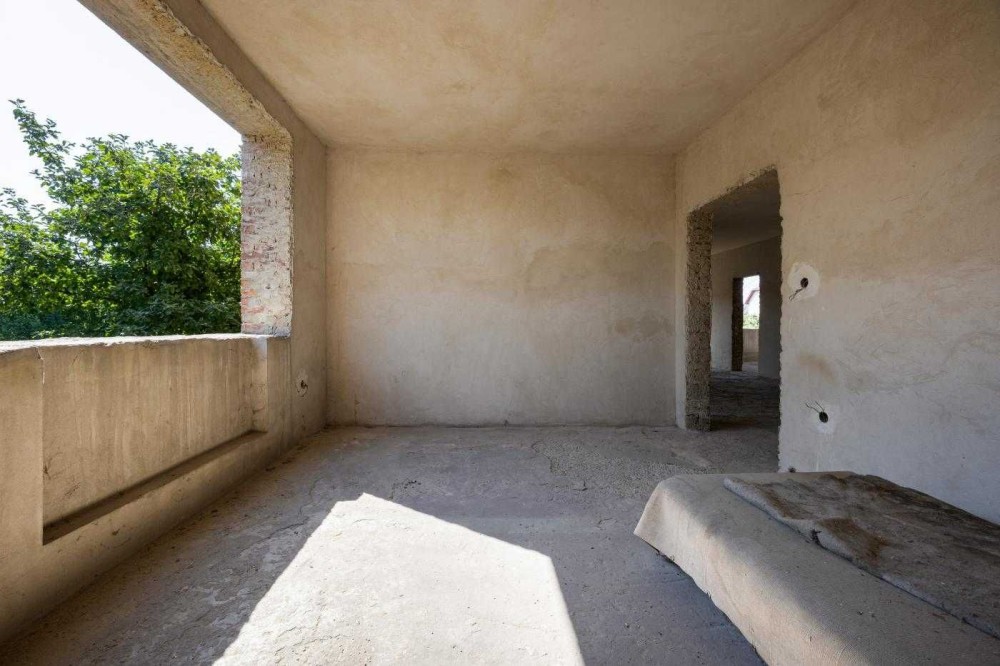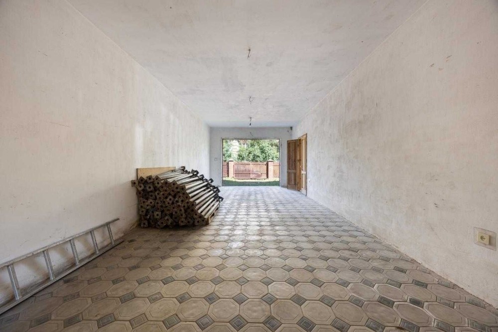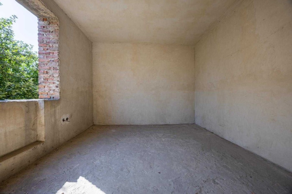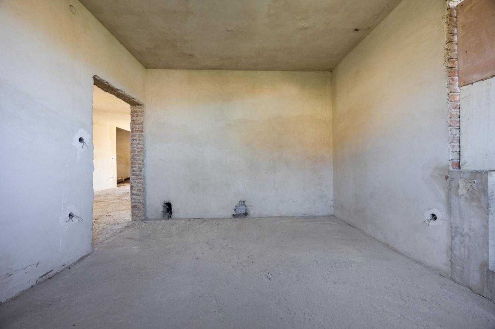 Будинок в 0-циклі, тобто ще без ремонту. Залита цементна стяжка на підлозі, поштукатурені стіни, розведена електрика по будинку, наявні лічильники на світло та газ, у гаражі плитка на підлозі.