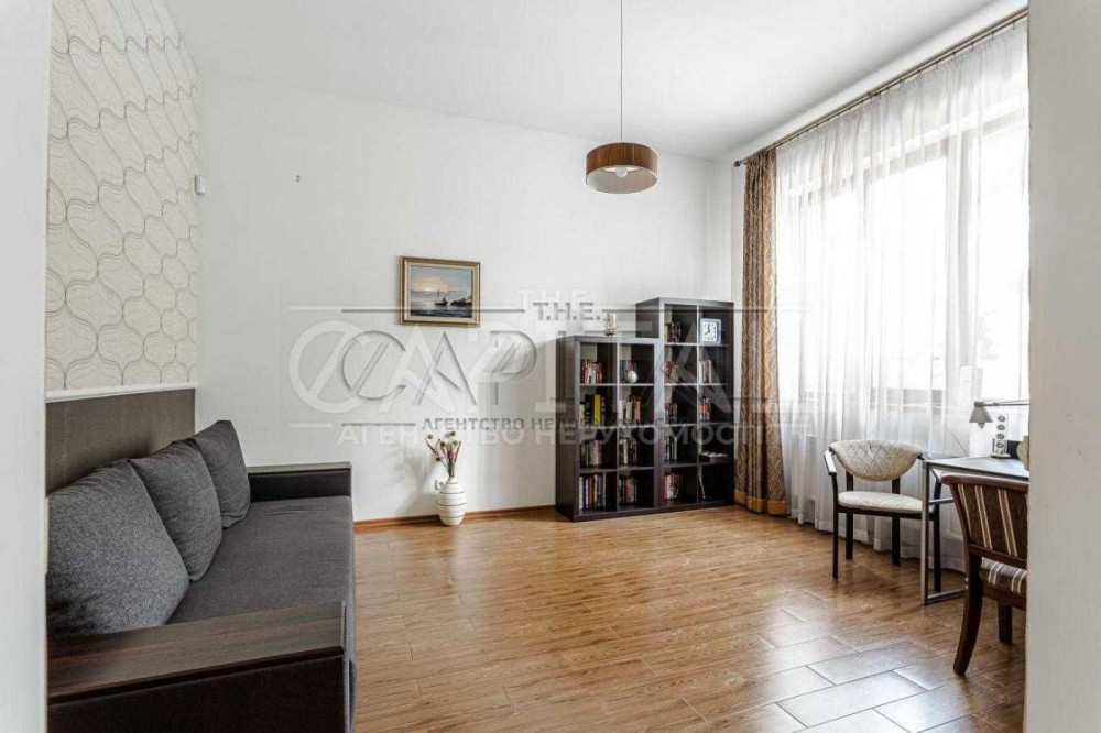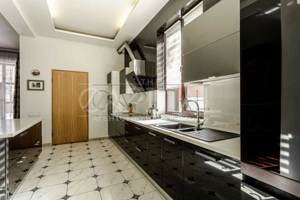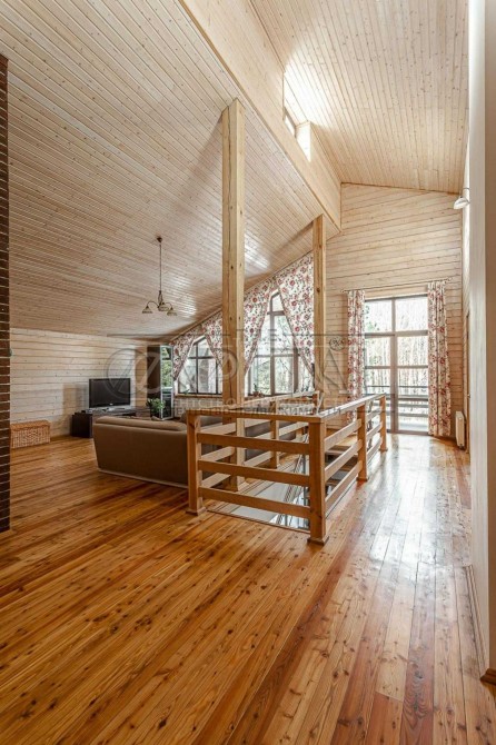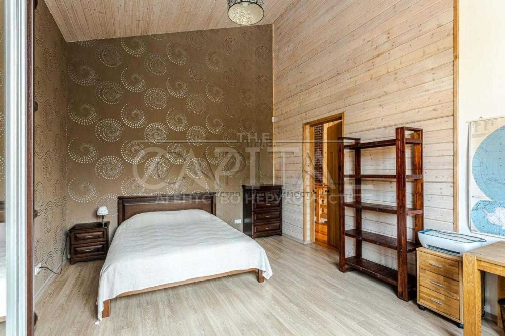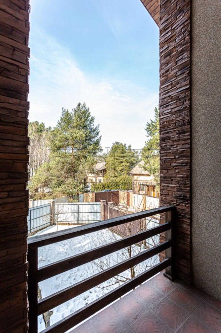 Будинок 2-х поверховий, 300 м.кв., 7 кімнат: 2 вітальні вільного планування, 4 спальні, кабінет, 3 санвузли, кухня-їдальня, пральна, бойлерна, вбиральня, камін, тераса, балкон, панорамні вікна в підлогу, високі стелі від 3.50 і від. У всіх спальнях 2-х спальні ліжка.