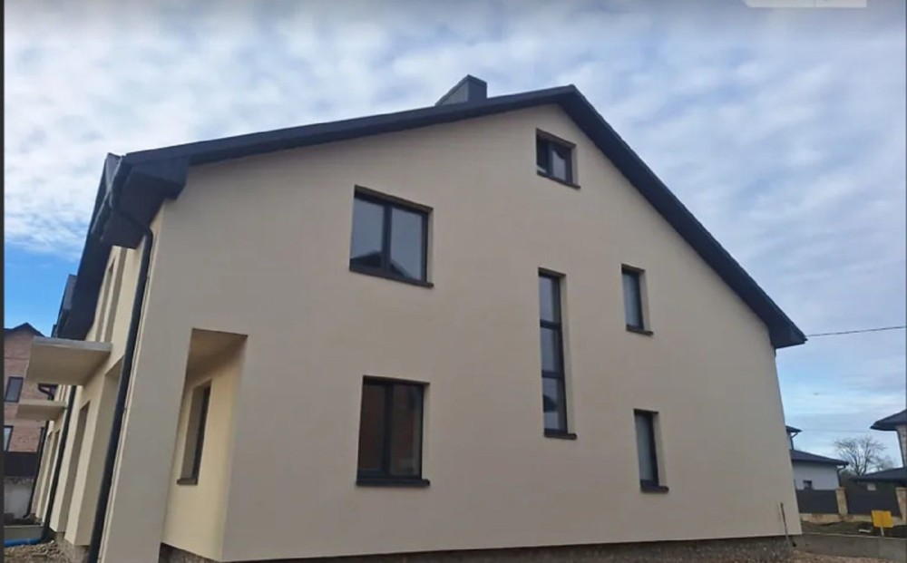 Продаж ! Будинок (дуплекс)в с.Байківці, утелений і зроблений фасад, бетонні сходи, стяжка, штукатурка, утеплене перекриття другого поверху, вихід на горище в будинок заведене світло, вода, септик газова труба на фасаді, загальна територія ділянки2.75сотки, загальна площа забудови 192метри, житлова 99м.кв, 4 кімнати на другому поверсі, +кладова і санвузол, на першому гадероб, кладова з гаражом санвузол і кухня студія і панорамні вікна з виходом на задній двір