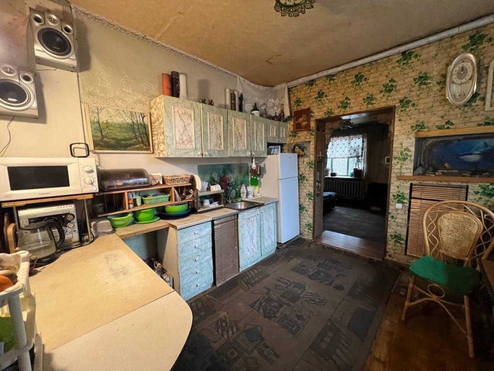 Курорт Ворзель, 30км від Києва (електричка, маршрутки до Бучі, Ірпіня, Києва). Інфраструктура: магазини, ресторани, кафе, музей, школи, дитячі садочки, пошта, базар, дитячі майданчики, озеро з зоною відпочинку, мед.заклади, санаторії. Продається частина будинку недалеко від озера по тихій вулиці Кленовій, 97,8кв.м. Два входи. Площа приватизованої ділянки 14 соток. На подвірї: металевий гараж, літній душ, колодязь, погреб, мангальний куточок, 2 септики, сад, город, квітники. Цоколь у будинку високий, дах - шифер та металочерепиця, вікна дерев’яні. Веранда 10кв.м. з дверима та вікнами. Житлова площа 72,6кв.м, підсобна 22кв.м, тамбур 3,2кв.м. (електролічильник), коридор 5кв.м, кухня 10,8кв.м (газовий лічильник, газова плита, меблі, мийка, напольний газовий (комбінований) котел, (який також можна топити дровами), вода централізована. Санвузол 6,2кв.м. (ванна, унітаз, рукомийник, пральна машинка, бойлер). Каналізація септик (можна доєднатися до центральної, яка проходить біля двору). Кімнати: перша - 25кв.м (висота 3 ,2м); друга - 28,6кв.м (висота 3,2м); третя - 19кв.м (висота 2,7м). На подвір’ї є недобудований окремий будинок з погребом. Їжаки, білки та птахи залишаються в подарунок).