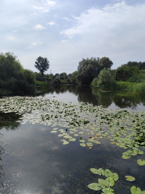 Вихід на озеро з участка, поряд річка, ліс.