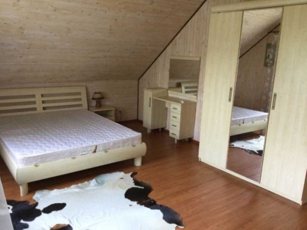 Двоповерховий дерев'яний будинок "ЗРУБ" 120 м.кв. + окрема баня 48м.кв. + барбекю (піч з верандою) + тераса + навіс для авто. Свердловина 70 метрів, колодязь із насосом, 2 септики, електрика 40 кВт.