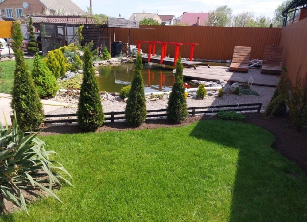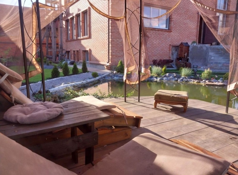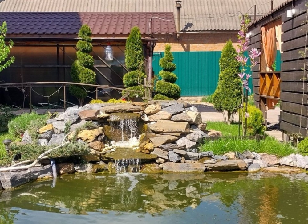 У дворі штучний пруд з рибою , ворота та гаражні автоматичні , в гаражі також тепла підлога.