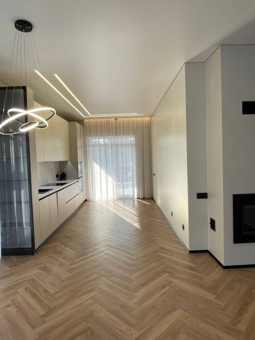 три окремі спальні, два санвузли, кладова, простора кухня-вітальня з каміном, тераса з панорамним видом на ліс.