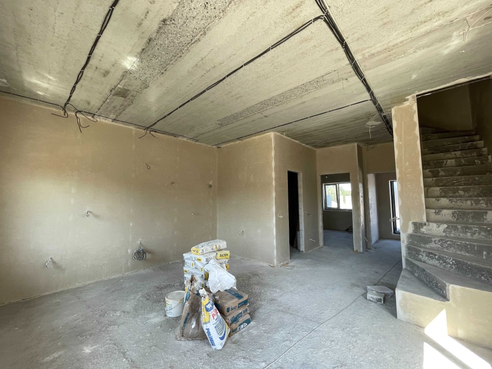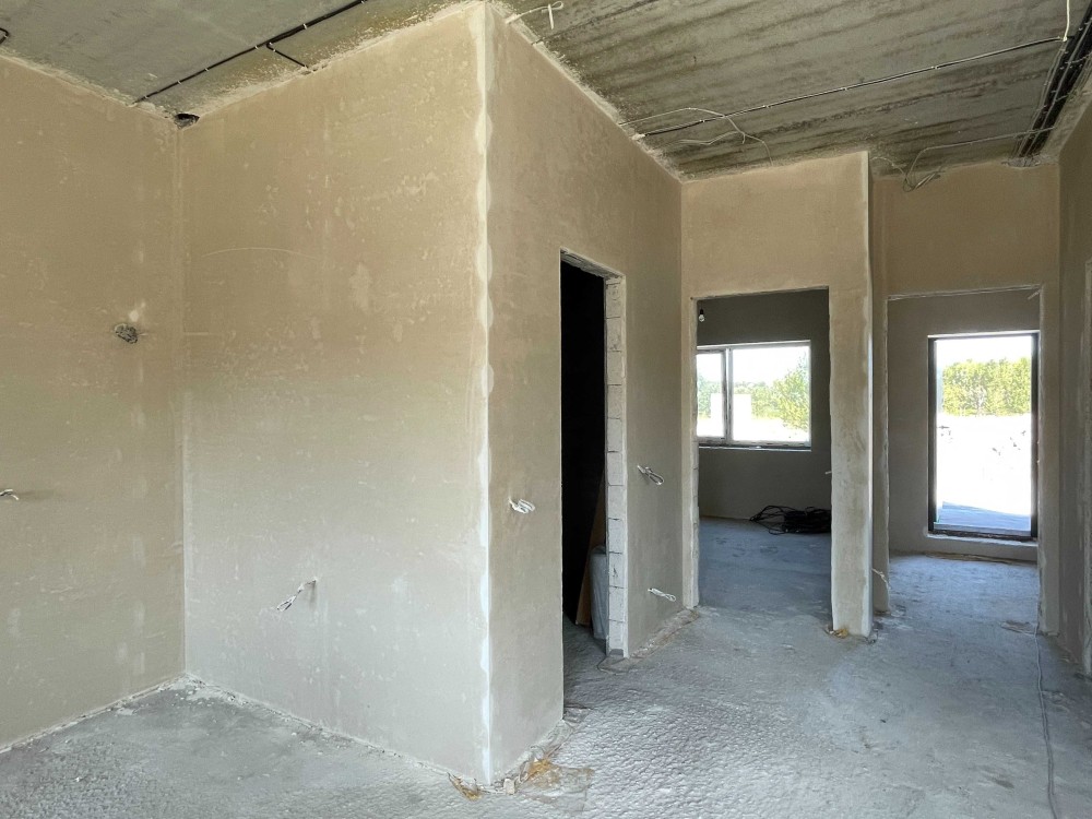 Максимальне наповнення: стяжка підлоги, гіпсова штукатурка стін, розводка електрики.