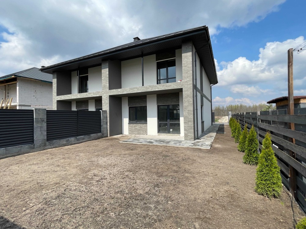 Вашій увазі пропоную дуплекс 120м² на 3 сотках землі. Житлова площа 54м2. Новий мікрорайон приватної забудови в 5хв від Бучанського Парку. Зручне та продумане планування будинку, на першому поверсі кухня-студія з виходом на задній двір, сан вузол та кімната. Другий поверх 3 житлові кімнати, санвузол 6м² та великий балкон з якого відривається захоплююча панорама лісопаркової зони.