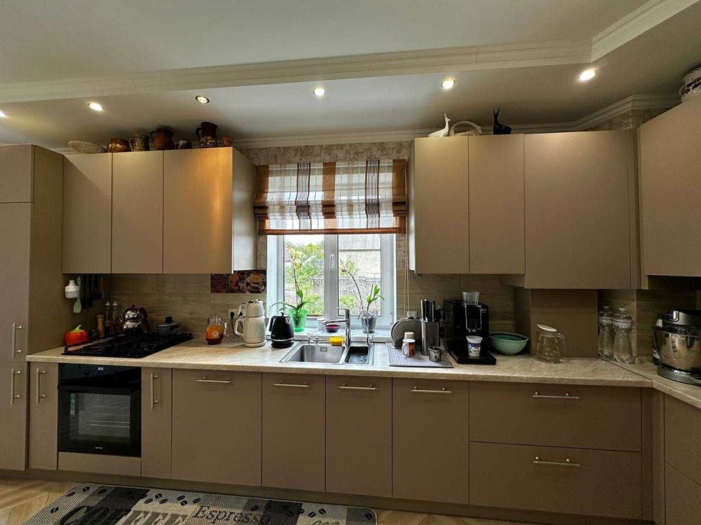 Пропонується до продажу сучасний двоповерховий дуплекс площею 225,9м², розташований на затишній ділянці площею 4 сотки. Будинок має п'ять просторих житлових кімнат із роздільним плануванням, що забезпечує комфортне проживання для великої родини. На першому поверсі розташовані стильна кухня, затишна вітальня, а також санвузол з душовою кабіною. На другому поверсі знаходяться чотири спальні та ще один санвузол із ванною. Дві засклені лоджії додають додатковий простір і можливість насолоджуватися краєвидами в будь-яку пору року. Будинок збудований з якісних матеріалів і має сучасний ремонт. Він укомплектований добротними меблями та сучасною побутовою технікою, що дозволяє заселитися одразу без додаткових витрат. Підвал будинку розділений на дві функціональні зони: прохолодну комору для зберігання запасів і надійне укриття. У гаражі, оснащеному автоматичними воротами, проведено світло та воду. На території будинку також є чудова тераса для літнього відпочинку, зона для барбекю, невеликий господарський двір та сад. Будинок підключений до всіх необхідних комунікацій: природний газ, водопровід, газовий котел для опалення та гарячої води. Цей дуплекс — ідеальний вибір для тих, хто цінує комфорт, якість і спокійне життя в затишному районі.