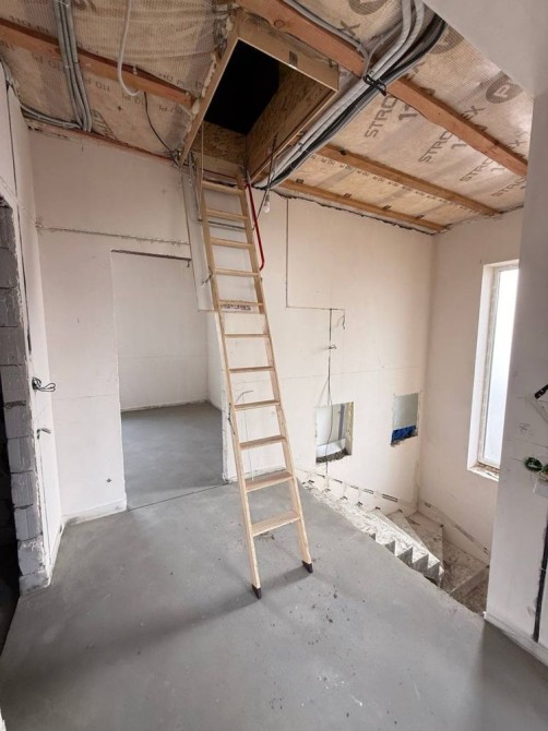 Зроблена стяжка, штукатурка, розведена електрика, тепла підлога, встановлені котли та система очистки води.