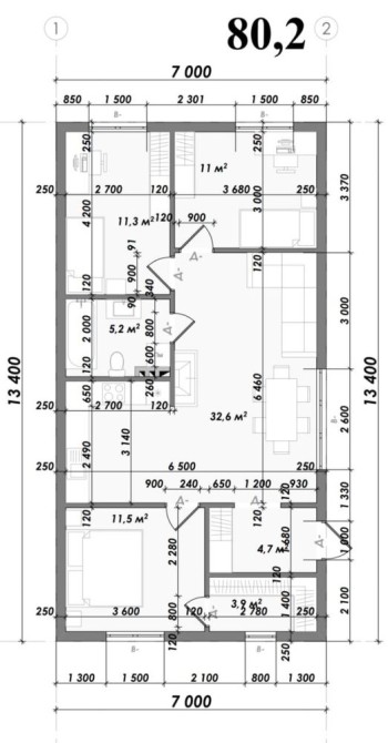 • Загальна площа 80.2 м2