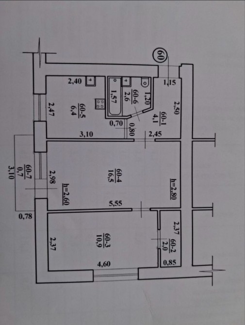 • Площа кухні 6.4 м2