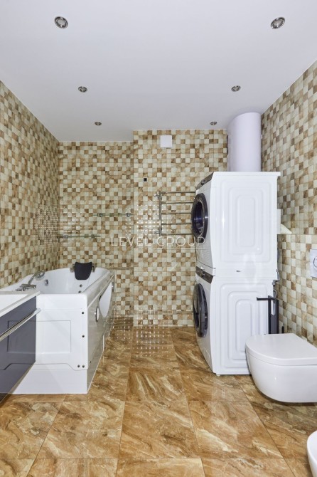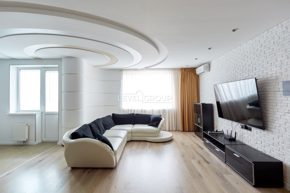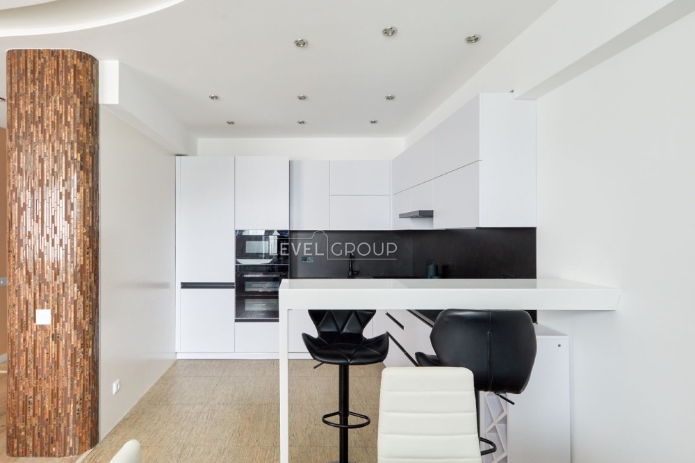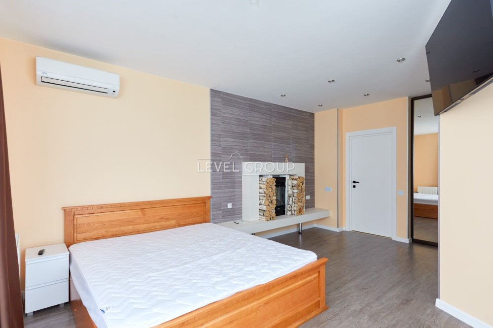 Логічне зонування: серцем оселі є грандіозна кухня-студія площею 56 м², що ідеально підходить для прийому гостей та сімейних вечорів. Додатково облаштовані дві затишні спальні.