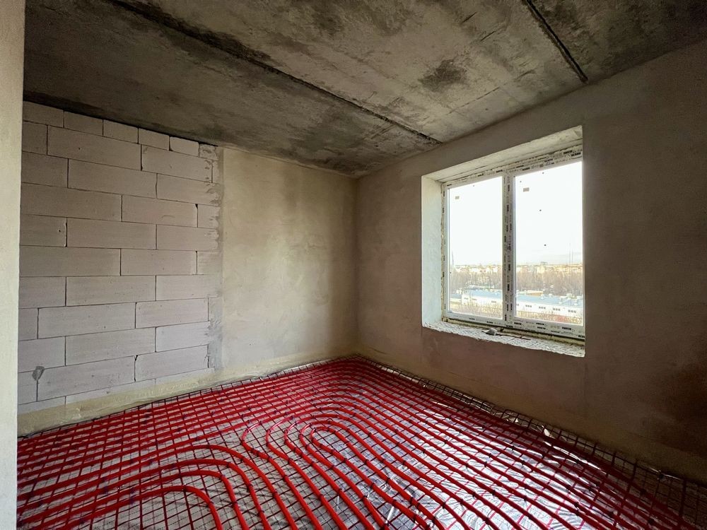 У квартирі залита стяжка, є розводка опалення та сантехніки, тепла підлога !