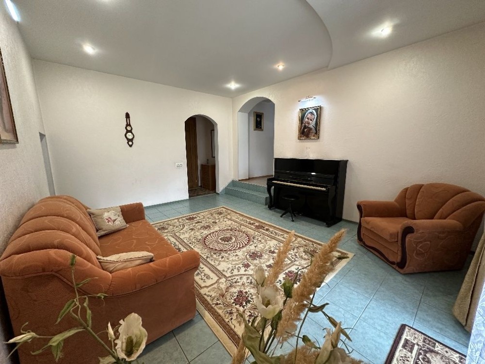 • Будинок: монолітний, фундамент 7 метрів, декорований цеглою, є вхід до гаража з будинку, підвал-бомбосховище (є вентиляція, він сухий, без плісняви)