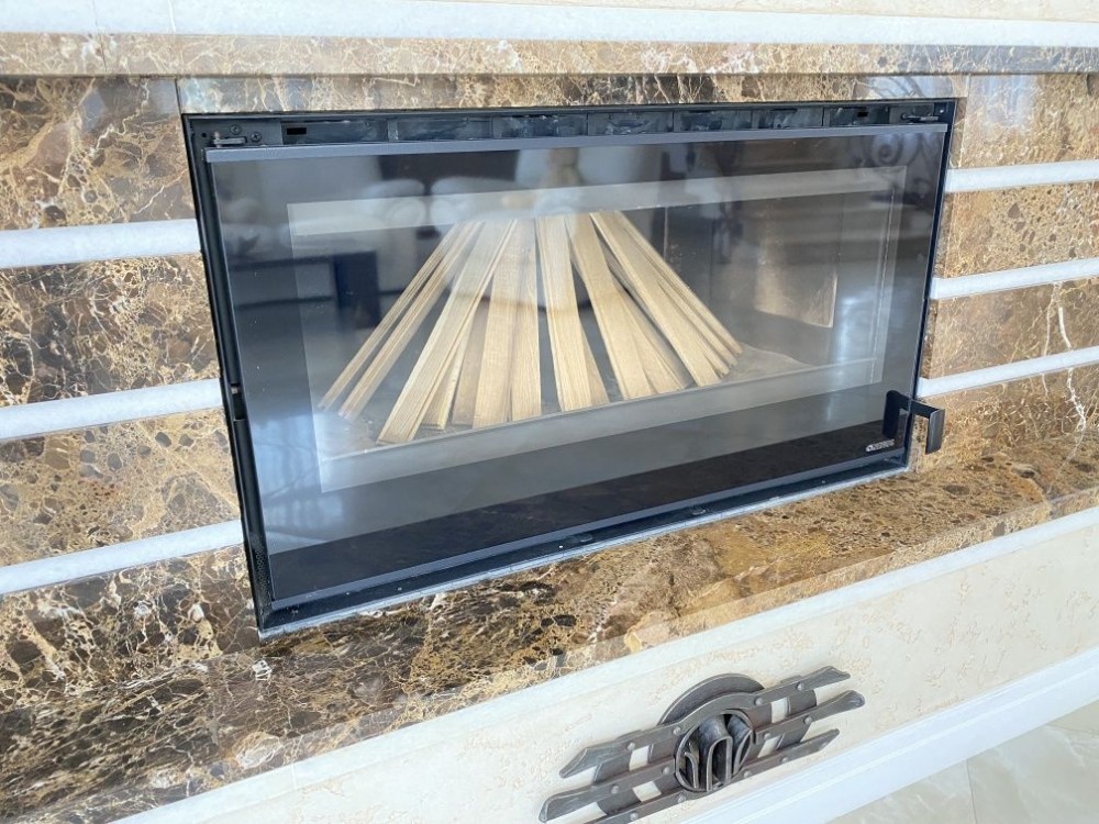 Унікальний камін, що діє, у вітальні.