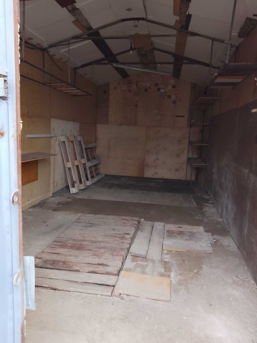 Металевий, підлога бетонна, утеплений керамзитом, є електрика. Великий погріб: 2 приміщення + прохід. Територія охороняється, вивозиться сміття, є естакада. Від власника. Торг.