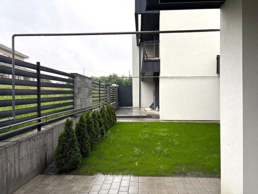 Територія повністю у бруківці, поруч є паркомісце для автомобіля з навісом.
